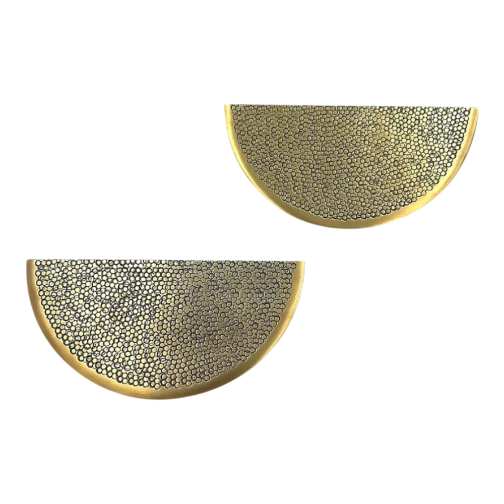 La plaque Demi-Lune Paon est une pièce élégante et décorative, conçue pour sublimer portes et meubles. Avec son diamètre de 120mm, elle présente un motif grainé qui rappellent la matière du Galuchat, apportant à chaque meuble une touche de sophistication.