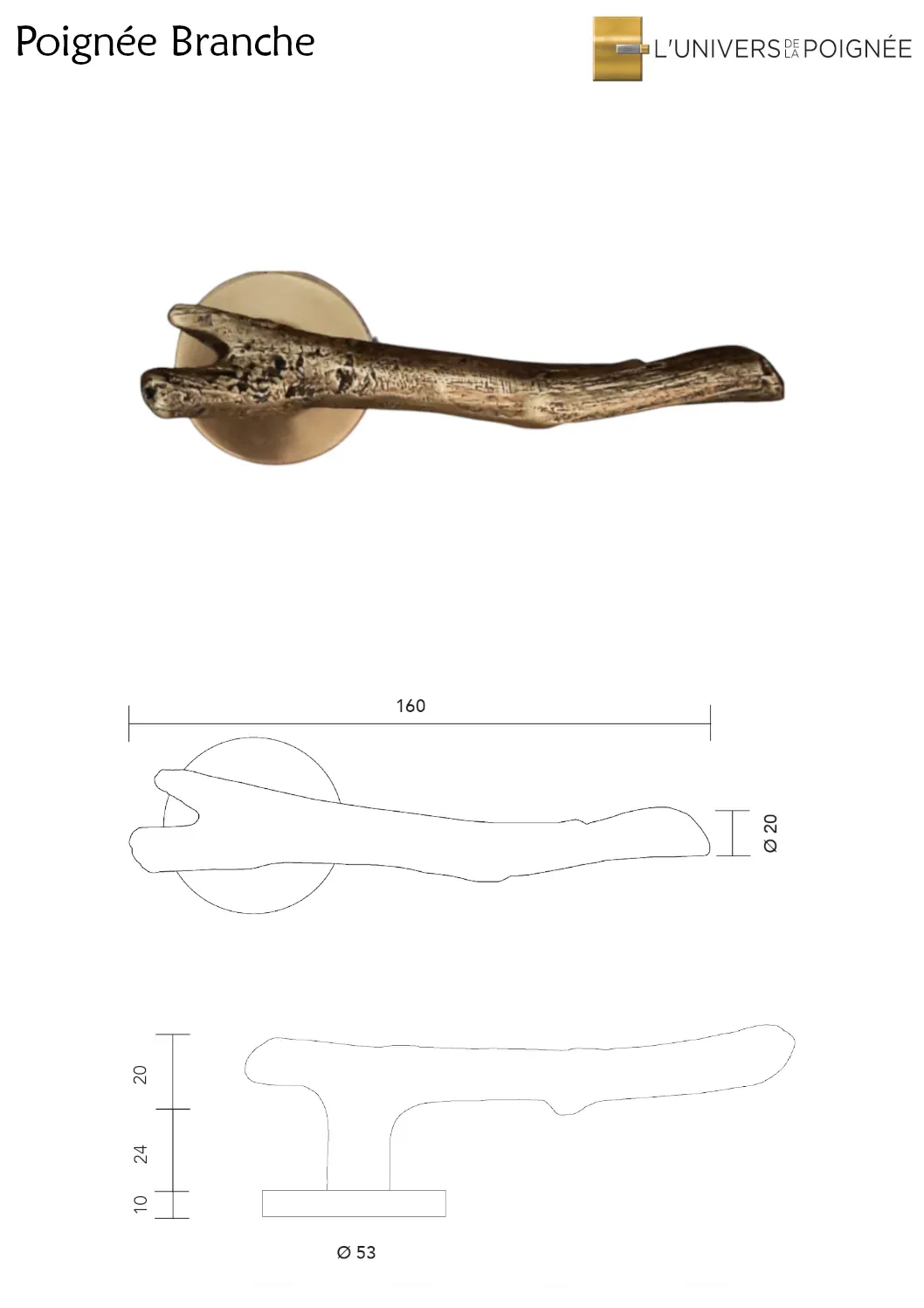 Poignée de porte BRANCHE MARTELÉE – Design naturel en laiton