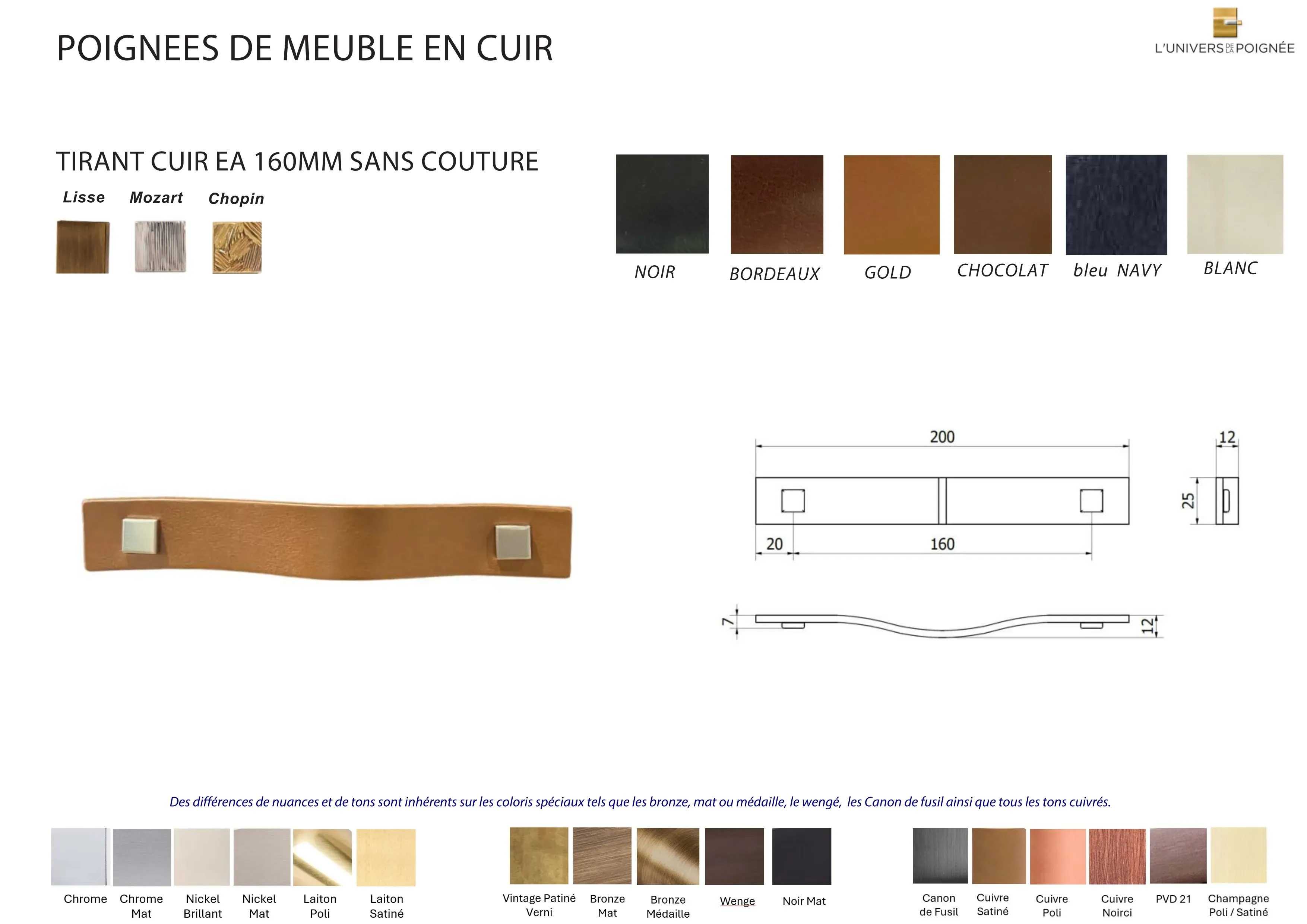 Cette collection de tirants de meuble en cuir se distingue par son design épuré et naturel. Disponible en cuir lisse ou surpiqué, elle offre un choix de différents coloris : noir, bordeaux, gold, bleu navy, chocolat et blanc, permettant de s’adapter à diverses ambiances et styles d’intérieur.