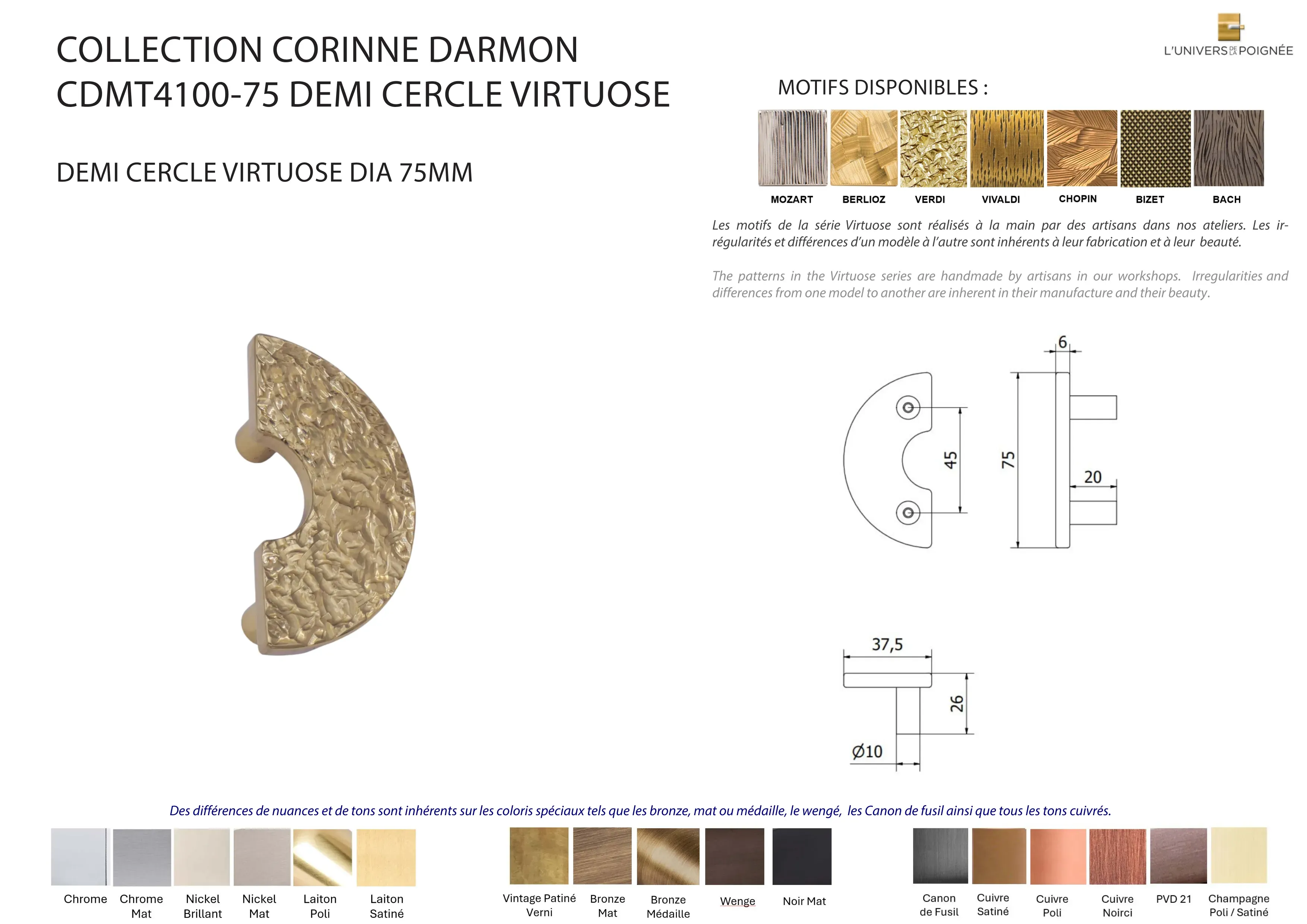 Poignée de tirage 1/2 cercle VIRTUOSE 75mm