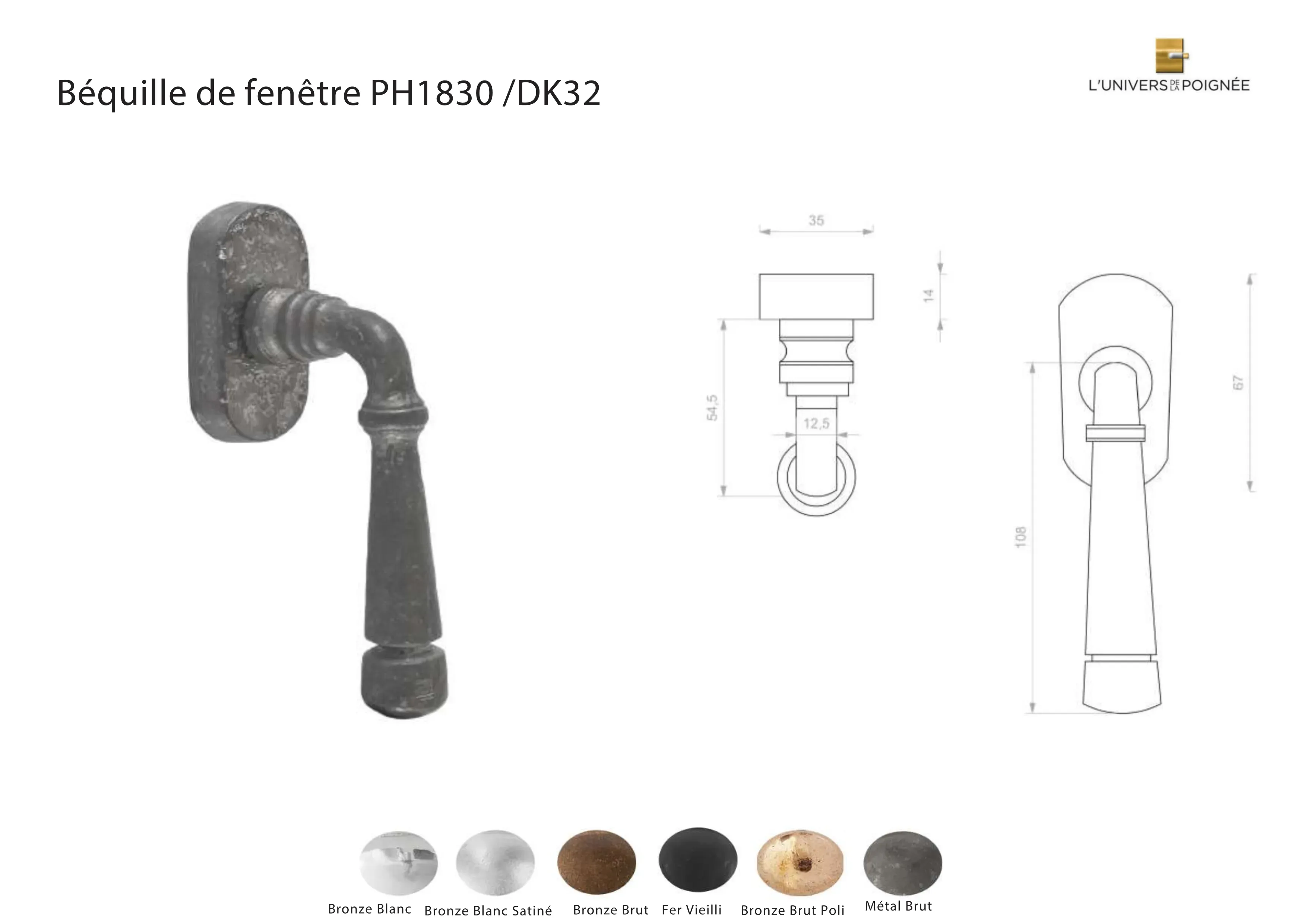Disponible en 6 finitions possibles, cette collection s’adapte à divers styles et ambiances, offrant une touche de raffinement et de modernité à chaque pièce : Fer vieilli ; Métal brut ; Bronze blanc ; Bronze blanc satiné ; Bronze brut ; Bronze brut poli